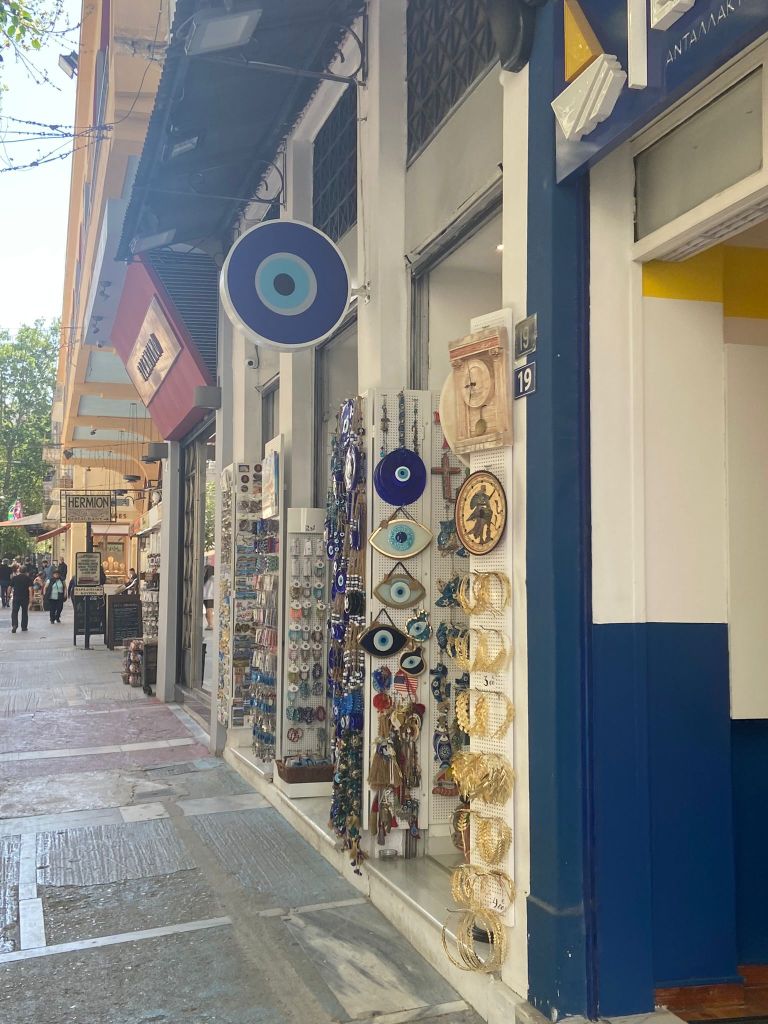 Parktan sonra biraz hediyelik eşya alışverişi yaptık. Bu arada Yunanlıların adeta nazar boncuğunu sahiplendiğini fark ettik. Tüm hediyelik eşya dükkanlarında nazar boncuklu objeler vardı. Siz hayırdır ya diyecektim ama çok kalabalıklardı korktum 😂