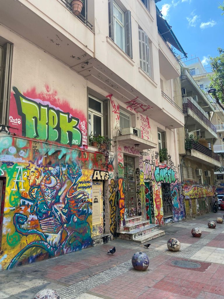 Gelelim son tam günümüz olan 3. güne. Valla biz çoğu yeri gezdiğimiz için 3. ve son gün adeta bir Atinalı gibi yerel ve lokal mekanlarda takıldık. Oranın Nişantaşı’sı olan Kolonaki’ye gittik. Tatlı-kahve keyfi yaptık, ardından Yunanistan’da anarşizmin merkezi olan Exarchia mahallesini gördük. Aslında Atina’nın bu bölgesi özellikle akşamları biraz tehlikeli olsa da gündüz gözüyle pek bir tehlike göremedik. Sadece neredeyse bu bölgedeki tüm duvarlar grafitiyle kaplıydı.