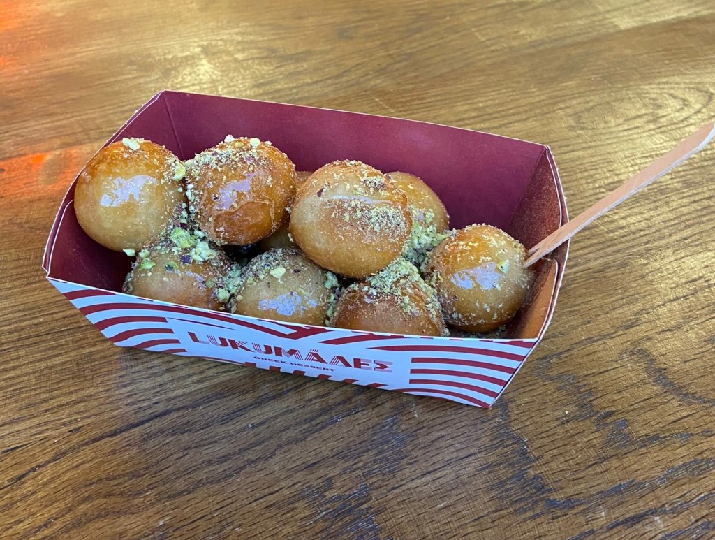Öğle-akşam yemeği için Omonoia tarafında yer alan Tpata isimli restorana gittik. Buraya giderseniz mutlaka Tpata salatasından söyleyin sosu çok iyiydi. Ayrıca biz soslu midye ve ahtapot söyledik ve toplamda 45 Euro ödedik. Türkiye’de bu tarz yiyecekleri çok şişirerek fiyatladıkları için biz yıllık deniz mahsulleri kotamızı hep yurtdışında dolduruyoruz. Size de öneririm. Bu arada bu tatlış restoranın sahibi çok cana yakındı bize sürekli komşu komşu dedi ve hesabı ödedikten sonra da bize likor ikram etti. Yemekten sonra meşhur Lokmades’i merak ettiğimiz için lokma yedik. Hayır lokmasına fazlaca aşına bir toplum olduğumuz için bu lokmanın bizce pek bir numarası yoktu, biz çok ağır olmaması için tarçınlı&ballı olanından söyledik.