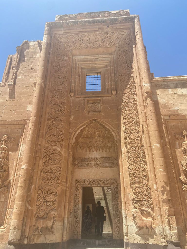 Rotamızı Ishak Paşa Sarayına çevirerek hedefimize ulaştık. Ishak Paşa Sarayının mimarisi ve renk tonları bize Endülüs mimarisini anımsattı. Yapımına 1685 yılında başlanan ve 1784’te tamamlanan saray; içinde barındırdığı cami, türbe, kütüphane, mahzenler, koğuşlar, harem ve selamlık bölümleri ile oldukça büyük bir yapıydı. 2000 yılından beri UNESCO’nun Dünya Mirası Geçici Listesi’nde bulunan sarayı müzekart ile gezmek mümkün. Yalnız benden söylemesi eğer fiziksel müzekart yerine dijitalini kullanıyorsanız saraya gitmeden önce QR kodunuzun ekran görüntüsünü almanızı öneririm, zira saray şehrin tepesinde yer aldığı için internet aşırı ama aşırı az çekiyor bu sebeple QR kodların ekran görüntülerini almamız herhalde bir 20 dakikamıza mal olmuş olabilir.