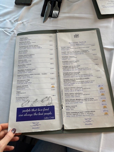 Biz sahil hattı boyunca biraz yürüdük, hava aldık. Ardından da öğle yemeği için restoran arayışına geçtik. Hava aşırı güzel olduğu için her yer Türk kaynıyordu ve bu sebeple tüüm restoranlar doluydu. Her zaman olduğu gibi bir şehre gitmeden önce araştırmalarımı yaptığım için Dedeağaç için de tüm blog hesaplarında, gezi notlarında vs restoran önerisi olarak ilk sıralarda “Nisiotiko Taverna” yer alıyordu, biz de oraya gittik. Rezervasyonumuz olmasa da rica minnet bizi bahçe alanında dip bir masaya oturttular. Burası aşırı övüldüğü için açıkçası merak ediyorduk. Menüleri hem Yunanca hem de Türkçeydi. Bizim için Yunanistan demek kabak kızartması demek bu sebeple biz kabak kızartması, ızgara ahtapot, yunan salatası ve 2 adet bira istedik. Aşırı kalabalık olduğu için yemekler çok uzun aralıklarla teker teker geldi. Önce salata geldi, onu yedik baya bekledik sonra ahtapot geldi. Normalde Yunanistan’da deniz ürünleri çok bol ve büyük gelir. Fakat gelen ahtapot incecikti… Onu da yedik, sonra inanmazsınız ama en az 30 dakika kabak kızartmasını bekledik, 2 kere garsonu uyardık. En sonunda o da geldi, ama bizim için bir hayal kırıklığıydı. Kabaklar tam daire değildi, ince değildi ve yağ çekmişti. Hizmetten de hiç memnun kalmadığımız için hesabı istedik, hesap bile masaya yoğunluktan gelemeyince biz gidip kasada ödedik… Normalde Yunanistan’da yemek sonrası tatlı ikramı olurdu ama biz bu restoranda o ikramı da göremedik. Ayrıca hiç memnun kalmadığımız hizmete de kişi başı 2 Euro kuver parası ödemek zorunda kaldık. Özetle 42 Euro para verdik ve mutsuzduk. Türklerin önerdiği bu restoran fos çıktı arkadaşlar, lütfen gitmeyin… Bir de restorandaki yemekler bizce Atina, Selanik’e vs göre bir tık fiyatlıydı, Türkler çok fazla geliyor diye fiyat politikalarını da Türkleştirmişler, Türk bir ortakları bile olabilir… Biz hata yaptık, siz yapmayın. İyi yorumlara güvenmeyin diye de biz eşimle bu restorana ait deneyimlerimizi yorumlara yazdık.