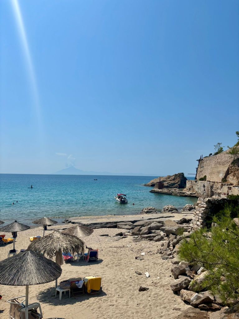 Thassos adasına geçmenin iki yolu var. Ya Kavala ya da Keramoti kasabasından feribota bineceksiniz . Biz Türkiye’ye daha yakın olduğu için Keramoti’den geçmeyi tercih ettik. (2 sene önce de buradan geçmiştik, o yazımı okumak istersiniz diye paylaşıyorum: https://beyazyakalinindram.com/2023/07/11/arabayla-yunanistan-tatili-son-rota-thassos-adasi/) Sınır kapısında Keramoti yaklaşık 2 saat sürdü. Feribot için hiç sıra beklemedik ve hemen kalkmak üzere olan feribota biniş yaptık. O kadar acele bindik ki bileti de içeriden aldık. (Gidiş 30 Euro, dönüş bileti ise 35 Euroydu.) Biz otelimizi şehir merkezi olan Limenas’ta tutmadık ama arabayla buraya 15 dakika mesafede adanın batısında yer alan bir bölgede tuttuk. Oteller yaz dönemi olduğu için maalesef ki çok pahalıydı. Biz de bütçemiz doğrultusunda Filippos isimli oteli tuttuk. Fiyat performans olarak bence gecelik oda fiyatı yüksekti ama dediğim gibi yaz döneminde en ucuz otel odaları ile fahiş fiyatlarda bu sebeple burası en azından temiz ve puanı yüksek diye tercih ettik. Kahvaltısı da vardı fakat her gün aynı çeşitler sunuluyordu🙈 Gelelim plaj ve restoran önerilerime: